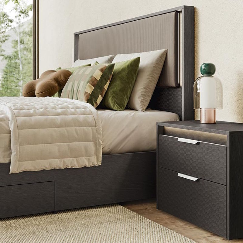 Кровать Accademia, отделка шпон дуба termocotto, экокожа, 186.5x225.5x140.5 см