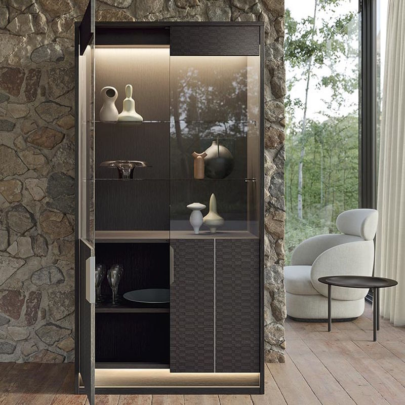 Витрина Amy, отделка темный дуб эко, tetris matte