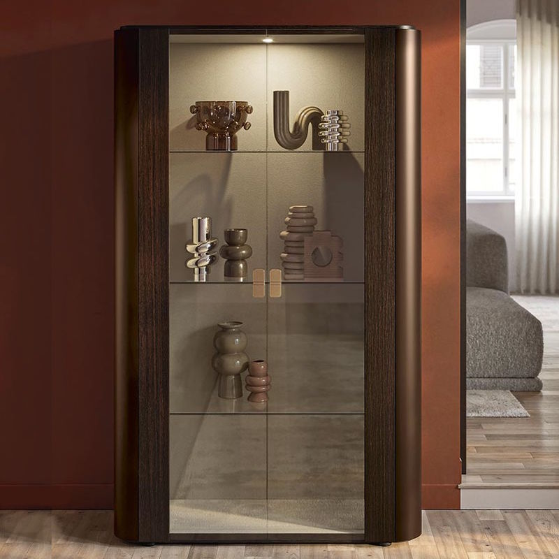 Витрина (левая) Heritage, отделка темный глянцевый шпон березы, подсветка, 64.5x52.7x190.4 см