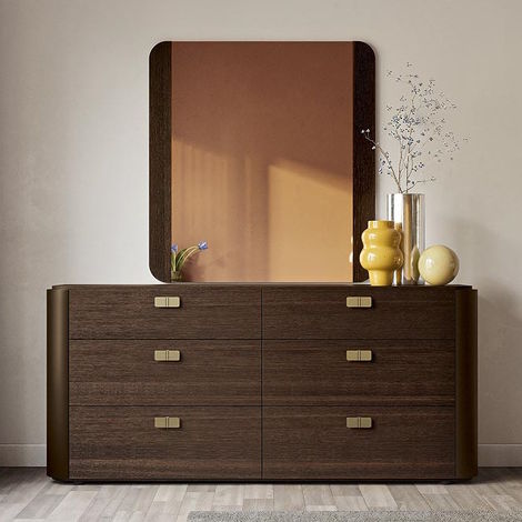 Гардероб Bellagio с ящиком, отделка шпон ореха coffee, розовое золото, зеркало, arena, 172.2x63.7x239.1 см