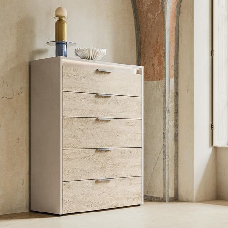 Комод высокий Tullia, отделка глянцевый бежевый, эко травертин, 102.2x49x142 см