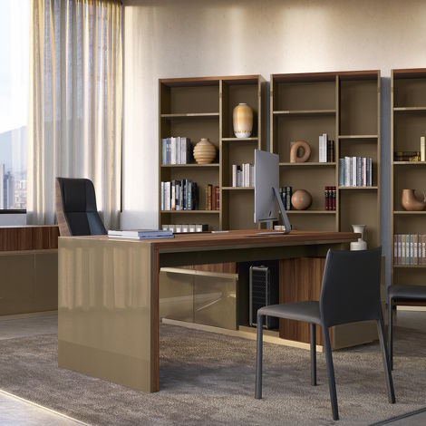 Письменный стол Porta Romana, отделка шпон ореха, бронзовый глянец, 180x86/180x76 см